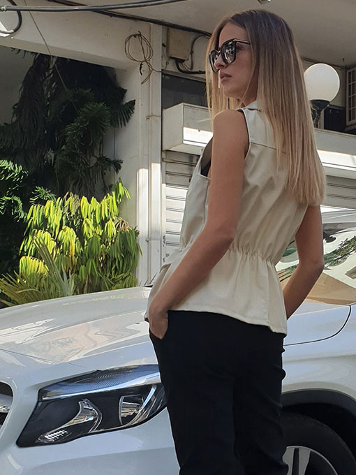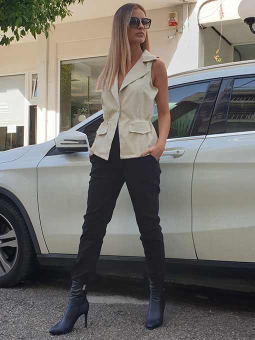 Γιλέκο δερματίνη μπεζ με σούρα στη μέση