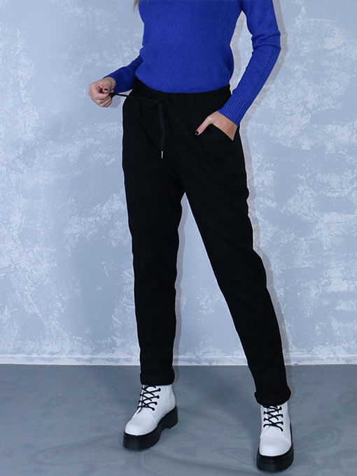 Παντελόνι φόρμα βελουτέ μαύρο με ρεβέρ