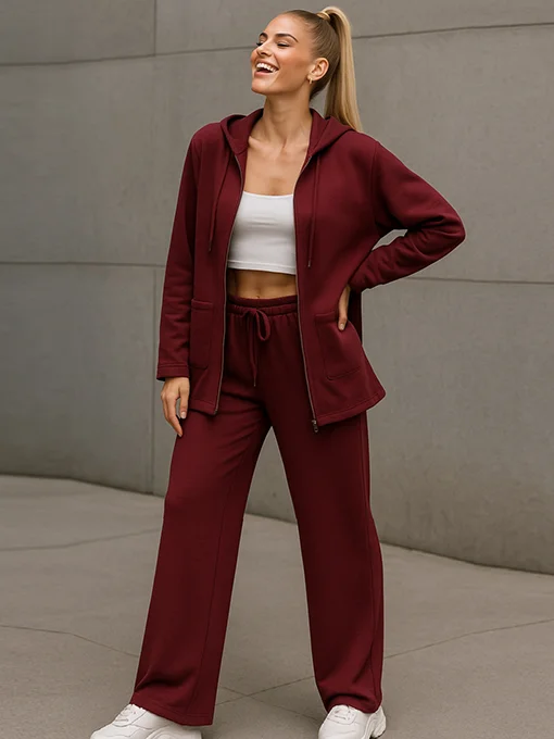 Σετ “Angel Wings” που αποτελείται από ζακέτα με κουκούλα, εξωτερικές τετράγωνες τσέπες και εντυπωσιακά φτερά από στρας στην πλάτη. Το παντελόνι είναι φαρδύ, με μαλακή πτώση και κορδόνι στη μέση για τέλεια εφαρμογή. Το ύφασμα είναι απαλό, ελαστικό και αέρινο, προσφέροντας άνεση και στυλ σε κάθε εμφάνιση. Ιδανικό για: casual chic εξόδους, ταξίδια ή stylish καθημερινό look.