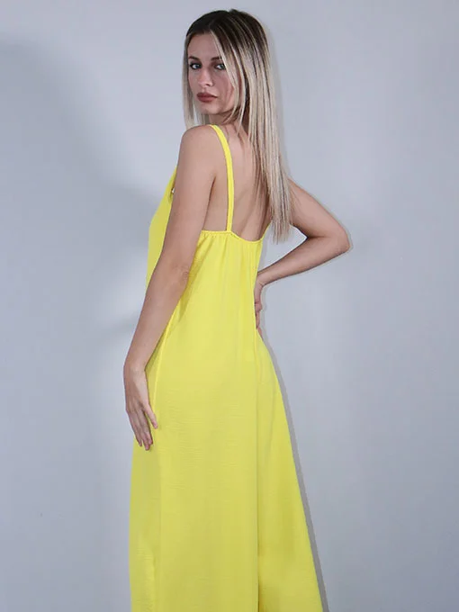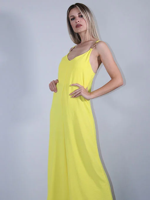 Φόρμα ολόσωμη φαρδιά με χρυσές λεπτομέρειες στις τιράντες.