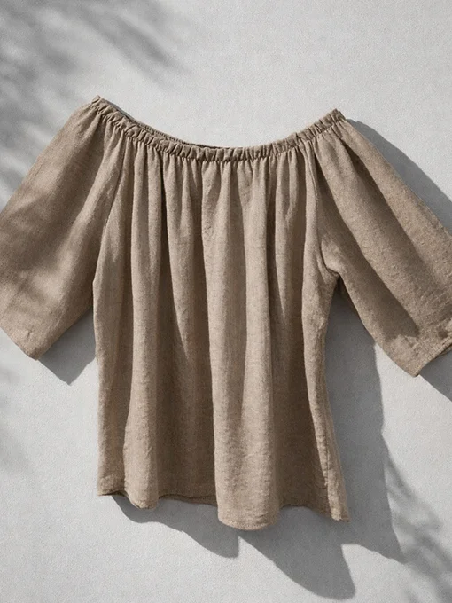 Αέρινη μπλούζα με έξωμη λαιμόκοψη και χαλαρή εφαρμογή, ιδανική για θηλυκές και κομψές εμφανίσεις από το πρωί έως το βράδυ.