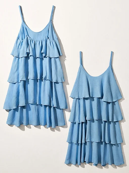 • Ρομαντικό φόρεμα με τιράντες και ανάλαφρη γραμμή, διακοσμημένο με εντυπωσιακά διαδοχικά βολάν που χαρίζουν κίνηση και θηλυκότητα. Ιδανικό για καλοκαιρινές εμφανίσεις.