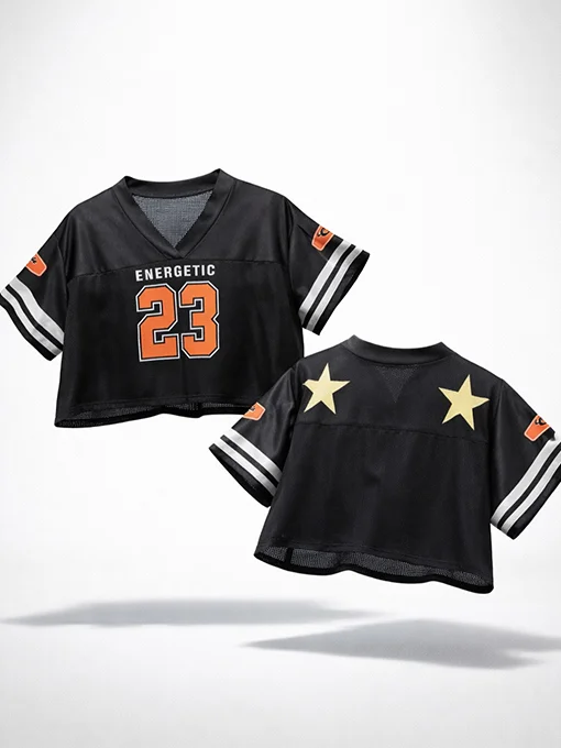 Αθλητικό μπλουζάκι κοντό με εκτύπωση, ύφασμα σατέν και δίχτυ.