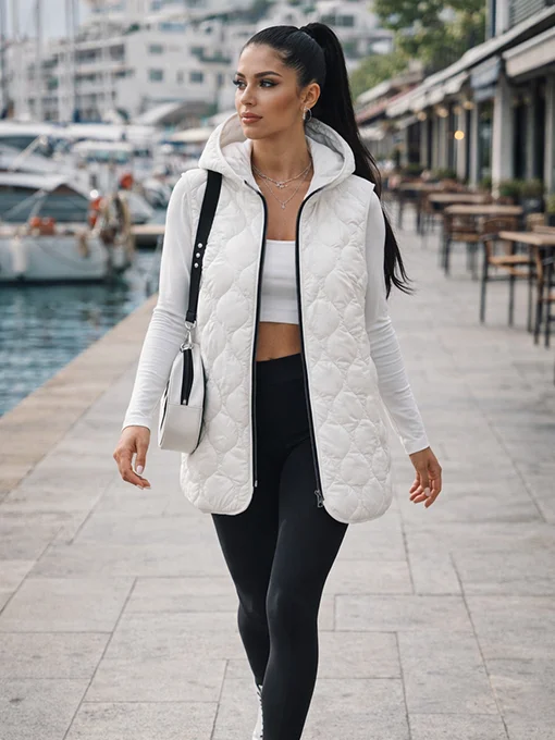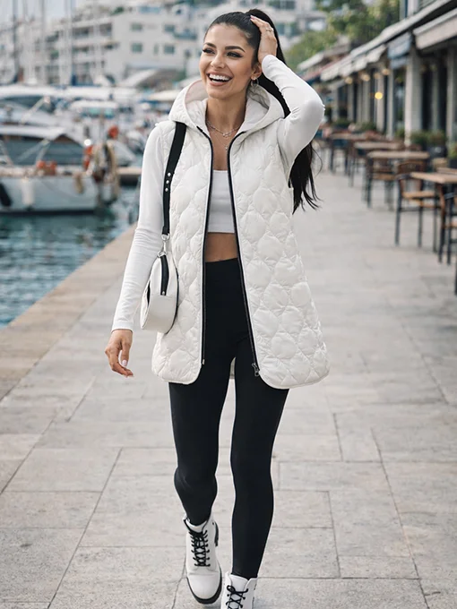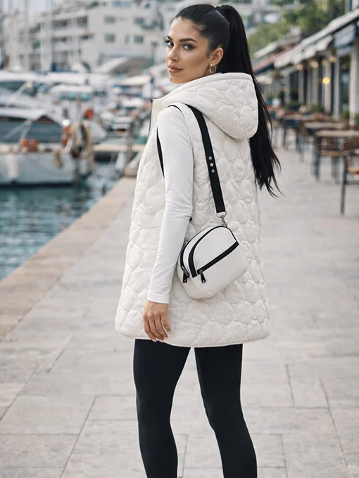 Αμάνικο καπιτονέ γιλέκο σε άνετη γραμμή, με κουκούλα kai φερμουάρ. Ιδανικό για sporty–chic εμφανίσεις, φοριέται εύκολα από το πρωί μέχρι το βράδυ.