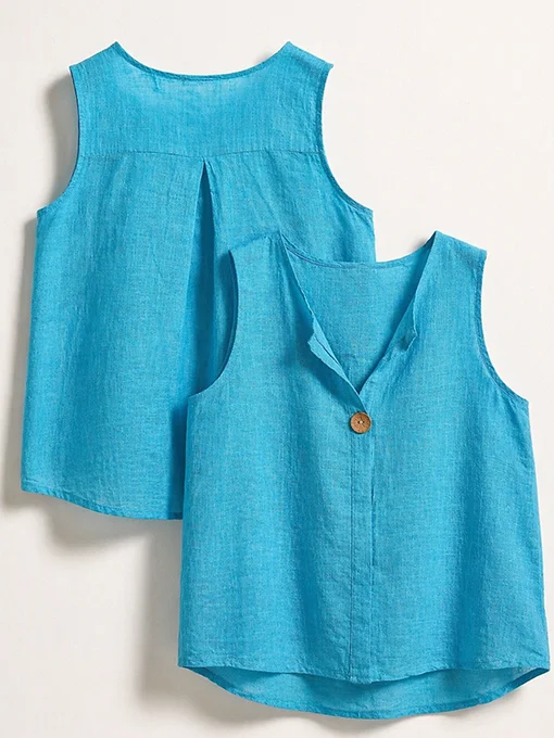 Βαμβακερή αμάνικη μπλούζα με άνετη γραμμή, διακριτικό άνοιγμα στο ντεκολτέ και κουμπί μπροστά. Ιδανική για καθημερινές εμφανίσεις, συνδυάζεται εύκολα με παντελόνες, σορτς ή φούστες, προσφέροντας άνεση και effortless στυλ.