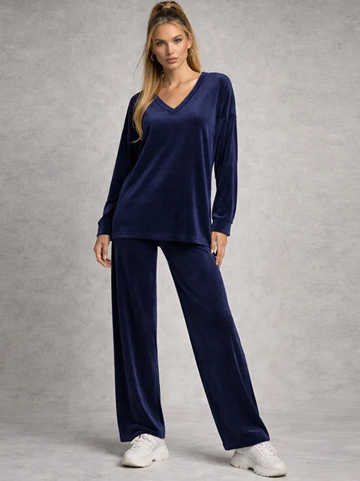 • Βελούδινο σετ μπλούζα φαρδιά με παντελόνα. Άνετο και κομψό σετ από μαλακό βελούδο. Ιδανικό για stylish καθημερινές εμφανίσεις με sneakers, αλλά και για πιο chic συνδυασμούς.