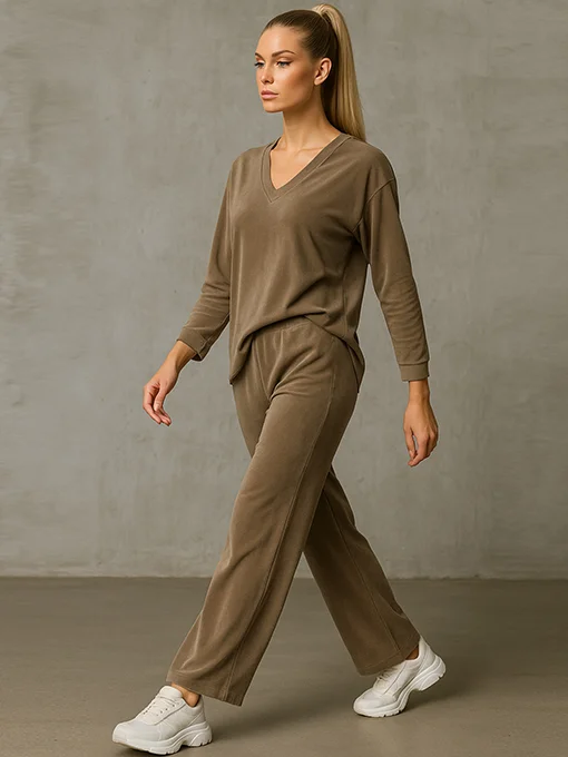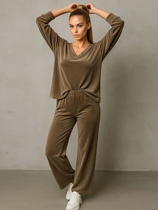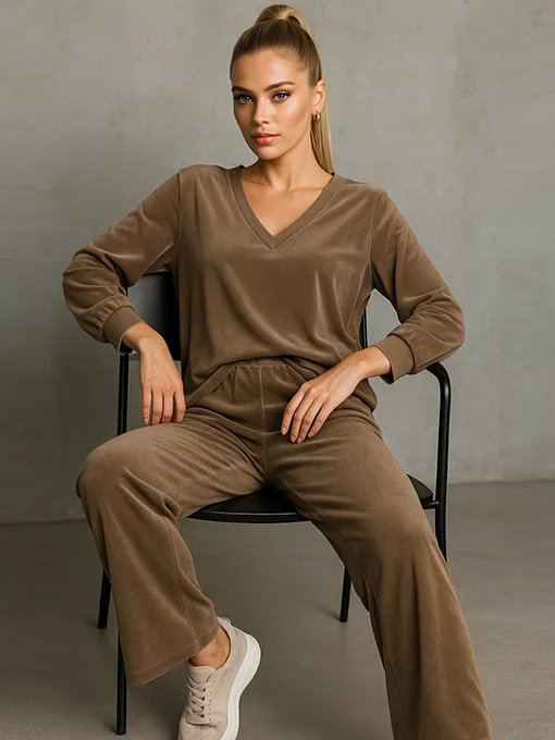 Βελούδινο σετ μπλούζα φαρδιά με παντελόνα