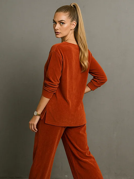 • Βελούδινο σετ μπλούζα φαρδιά με παντελόνα. Άνετο και κομψό σετ από μαλακό βελούδο. Ιδανικό για stylish καθημερινές εμφανίσεις με sneakers, αλλά και για πιο chic συνδυασμούς.