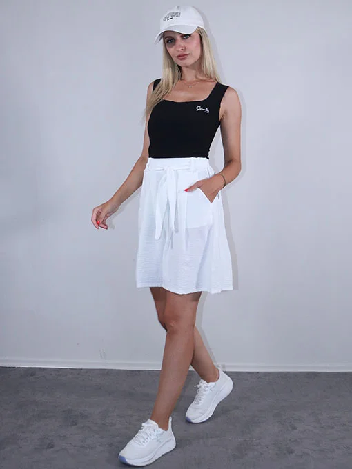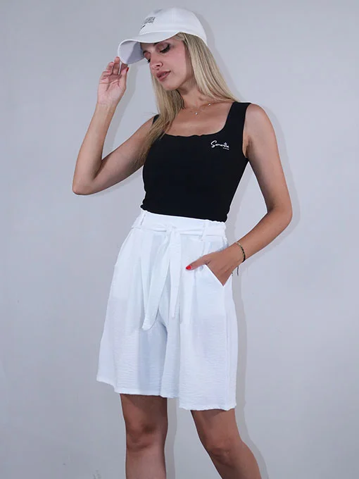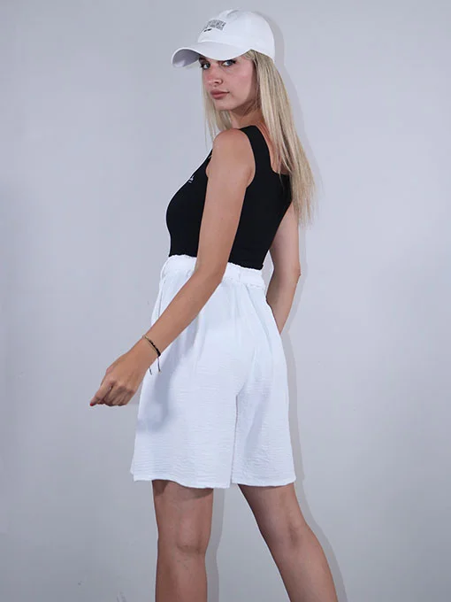 • Βερμούδα φαρδιά με τσέπες και ζωνάκι.