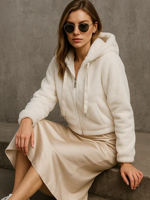 Γούνινο jakcet, με κουκούλα και τσέπες. Κατασκευασμένη από οικολογική γούνα υψηλής ποιότητας, προσφέρει μοναδική αίσθηση απαλότητας και ζεστασιάς. Ένα statement κομμάτι που συνδυάζει urban street style με modern fashion αισθητική, ιδανικό για καθημερινές αλλά και πιο fashionable εμφανίσεις