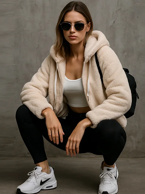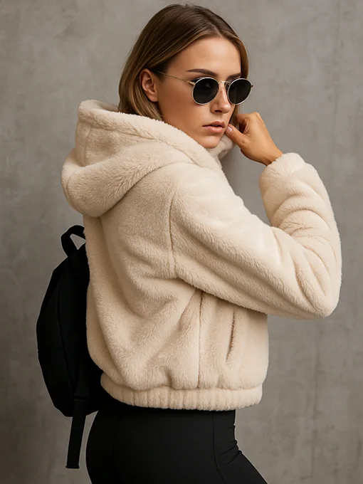 Γούνινο jakcet, με κουκούλα και τσέπες. Κατασκευασμένη από οικολογική γούνα υψηλής ποιότητας, προσφέρει μοναδική αίσθηση απαλότητας και ζεστασιάς. Ένα statement κομμάτι που συνδυάζει urban street style με modern fashion αισθητική, ιδανικό για καθημερινές αλλά και πιο fashionable εμφανίσεις