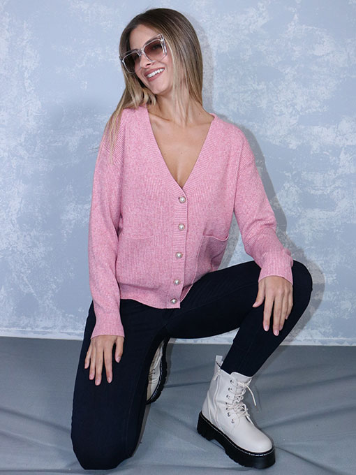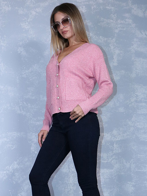 Ζακέτα πλεκτή ροζ με τσεπάκια