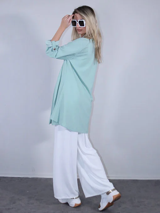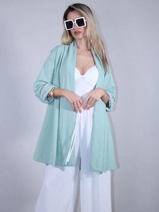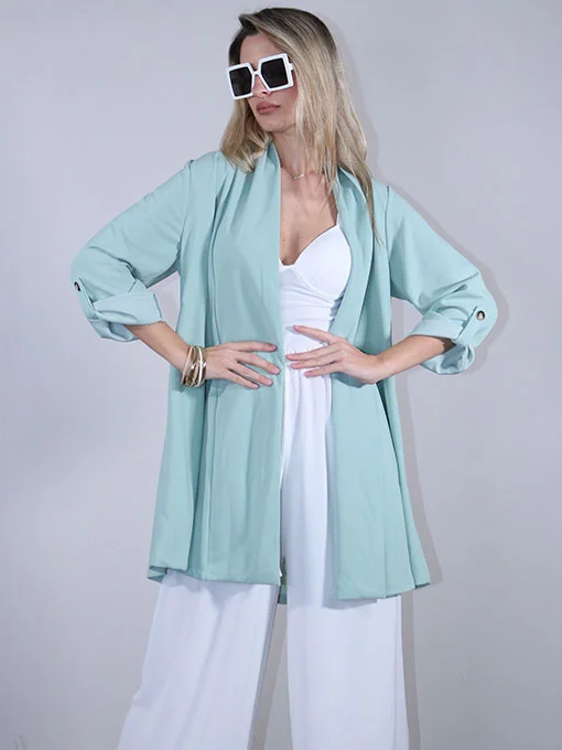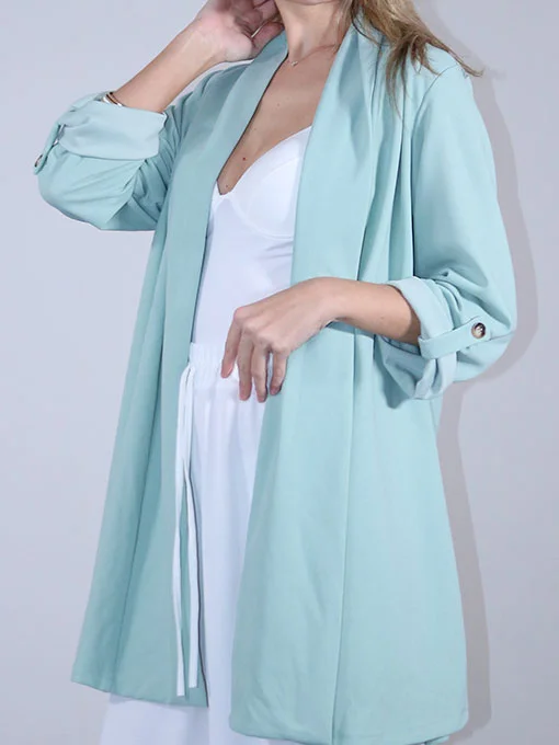 • Ζακέτα φαρδιά μακριά με γυριστά μανίκια και κουμπάκια