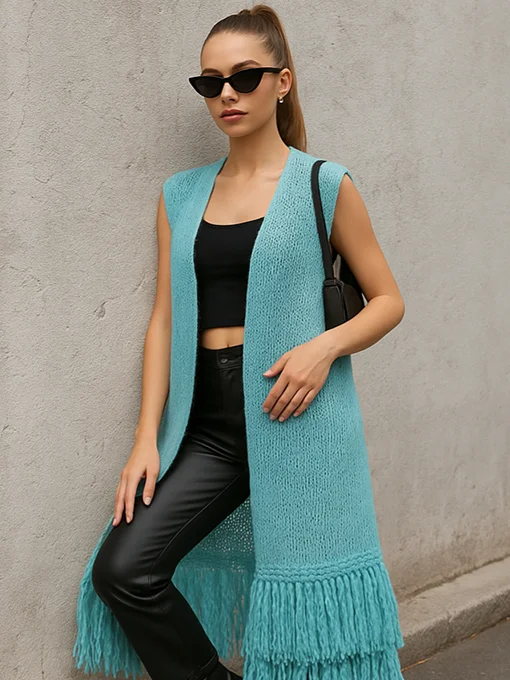 Καζάκα πλεκτή μακριά με κρόσσια.