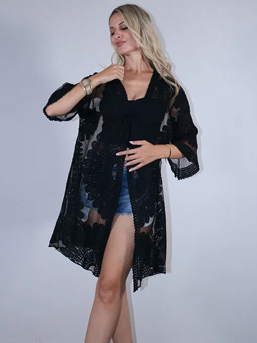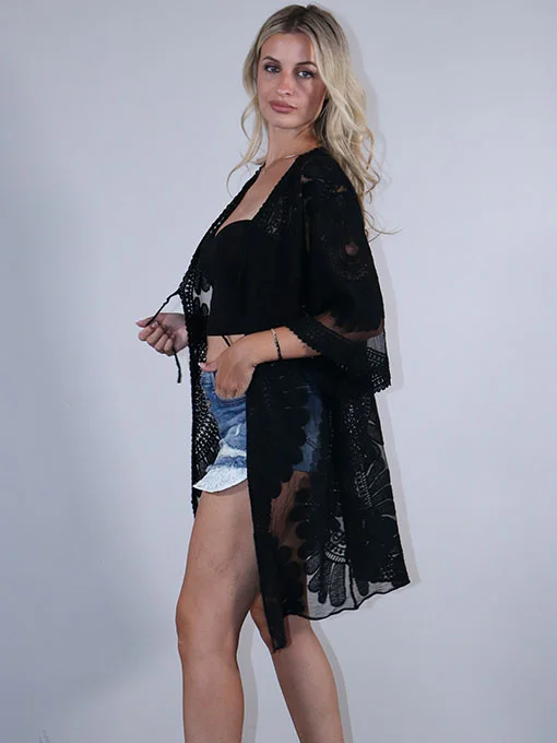 Κιμονό δαντέλα με μανίκια 3/4 και δέσιμο στο στήθος.