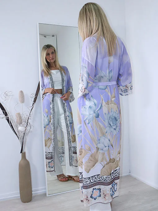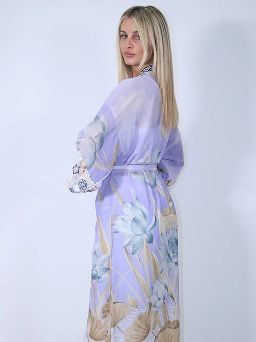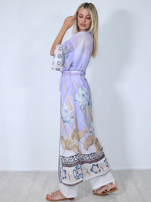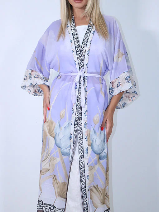 Κιμονό εμπριμέ λιλά μακρύ c-throu