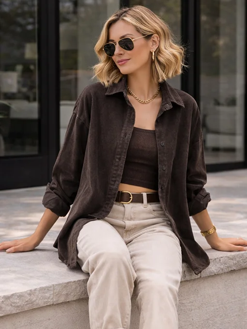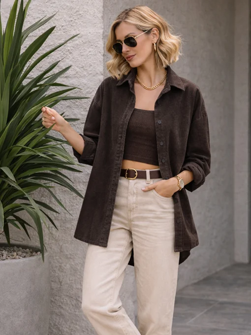 Κοτλέ πουκάμισο βαμβακερό oversize
