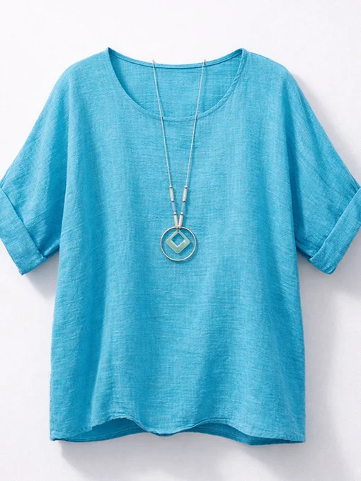 Μπλούζα φαρδιά λινή με κολιέ.