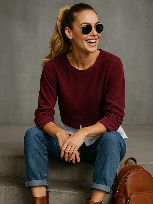 Μπλούζα κοτλέ με πουκάμισο. Το επάνω μέρος είναι από απαλό κοτλέ ύφασμα με ίσια φαρδιά μπάσκα, ενώ στο κάτω μέρος συνεχίζει με λευκό ύφασμα τύπου πουκάμισο που προσθέτει layering εφέ και στυλ. Η πλάτη πέφτει με ελαφριά στρογγυλάδα για πιο χαλαρή εφαρμογή.