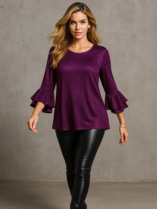 Μπλούζα λουρέξ βολάν στα μανίκια