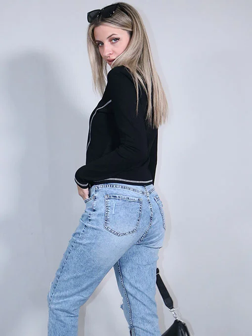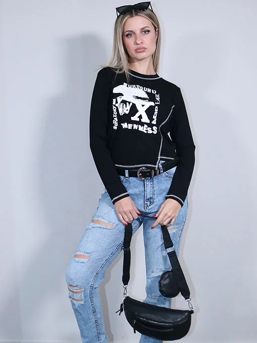 Μπλούζα με στάμπα και εξώγαζα, μακρυμάνικη.