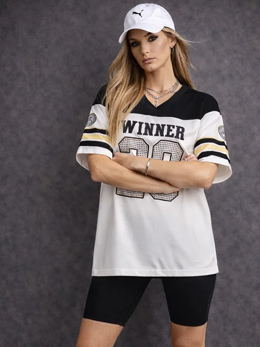 Μπλούζα σατέν oversize αθλητική μακριά με τύπωμα.