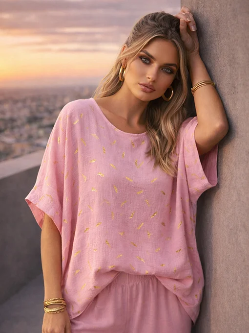 Μπλούζα νυχτερίδα φαρδιά με χρυσές λεπτομέρειες.