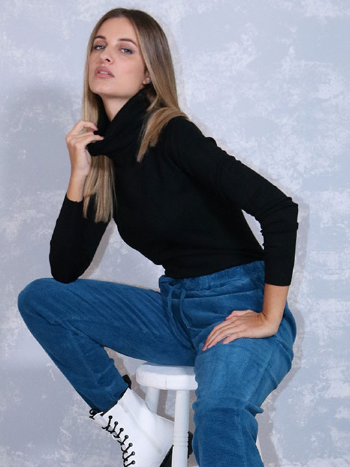 Μπλούζα πλεκτή, μονόχρωμη, ζιβάγκο ελαστική.