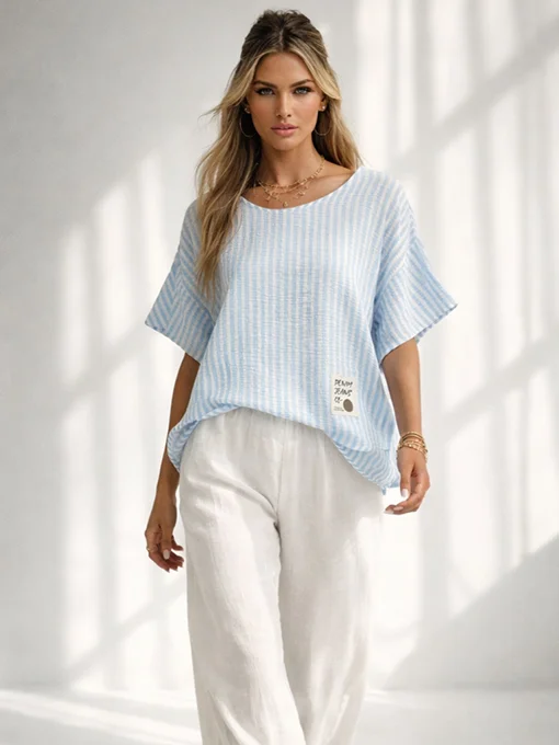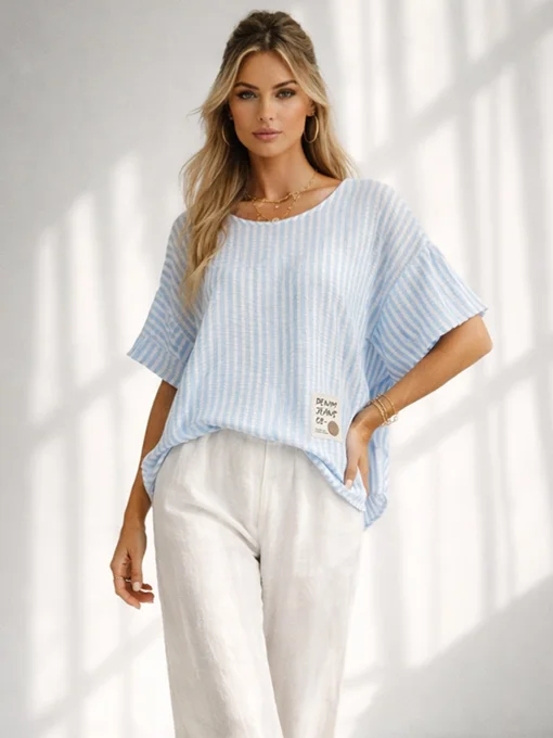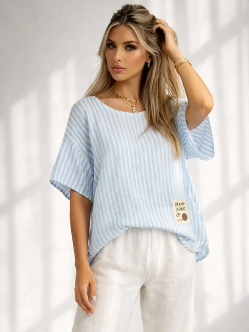 Μπλούζα ριγέ φαρδιά νυχτερίδα.