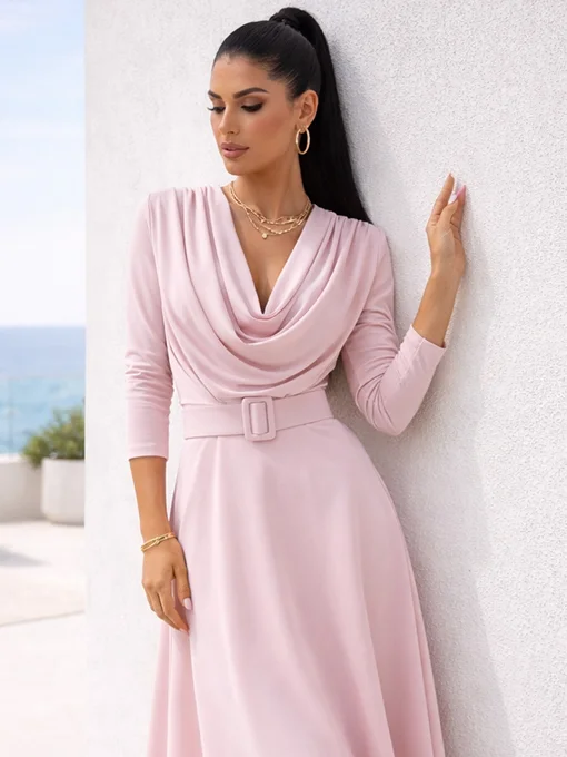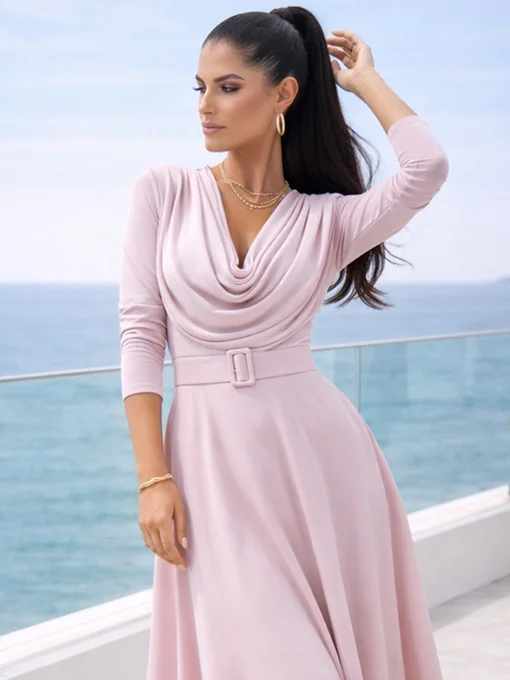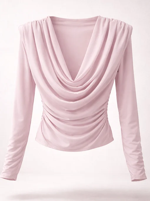 Εντυπωσιακή μπλούζα με βαθύ ντραπέ ντεκολτέ και διακριτικές σούρες που αγκαλιάζουν το σώμα. Θηλυκή, κομψή και ευέλικτη, αναδεικνύει κάθε outfit με high-fashion χαρακτήρα.