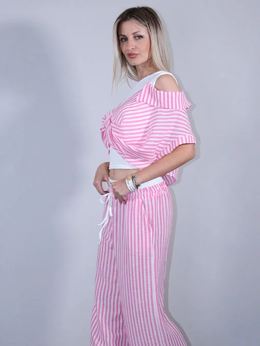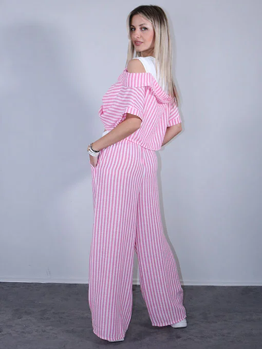 • Μπλούζα τύπου πουκάμισο ριγέ. Είναι από μέσα φανελάκι λευκό και απέξω ριγέ πουκάμισο με ριχτούς ώμους.
