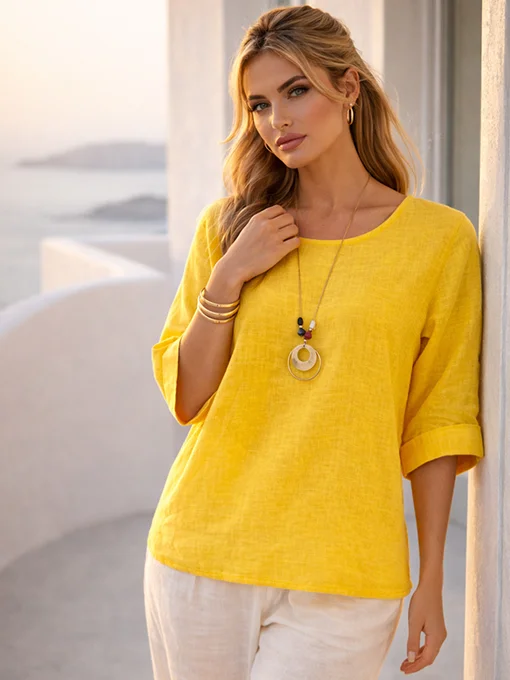 Μπλούζα με κολιέ λινή