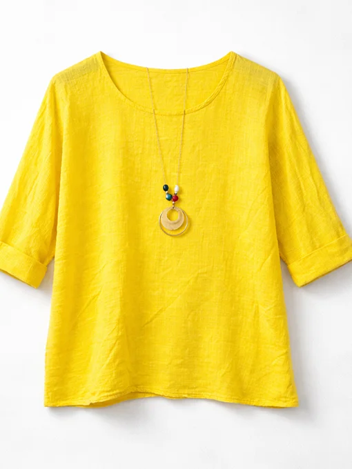 • Μπλούζα φαρδιά λινή με κολιέ