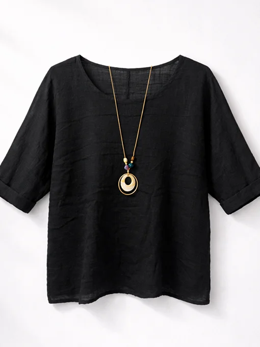 Μπλούζα φαρδιά λινή με κολιέ.