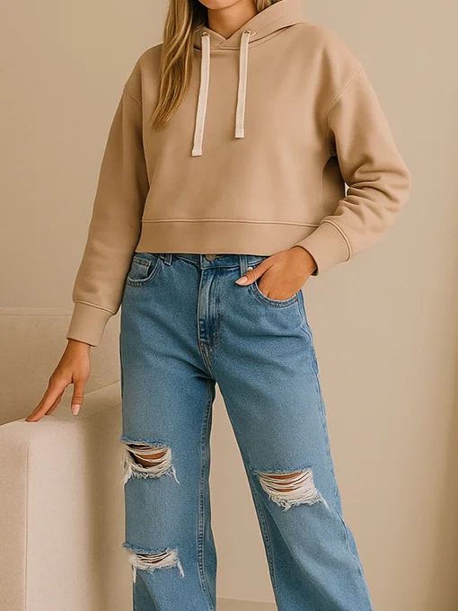 Μπλούζα φούτερ κοντή με κουκούλα.
