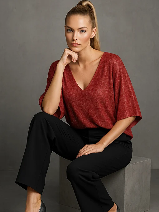 Μπλούζα lurex με λαιμόκοψη V