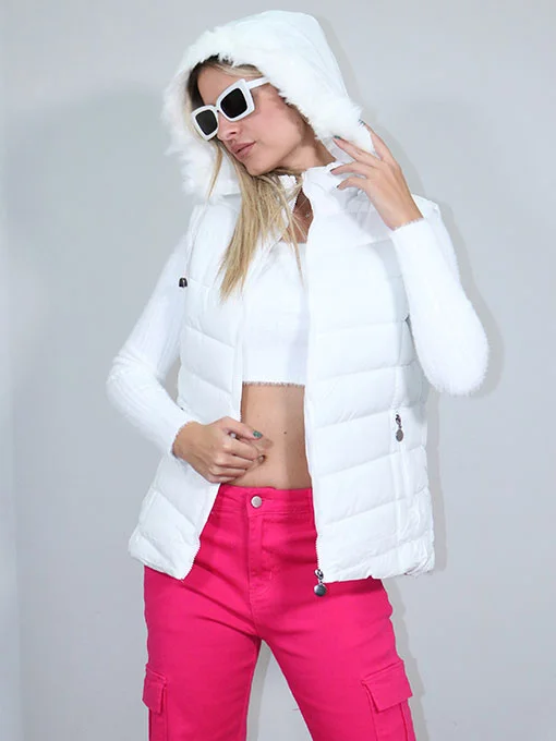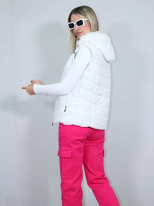 Μπουφάν αμάνικο λευκό φουσκωτό