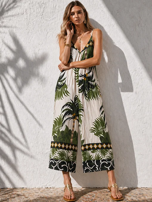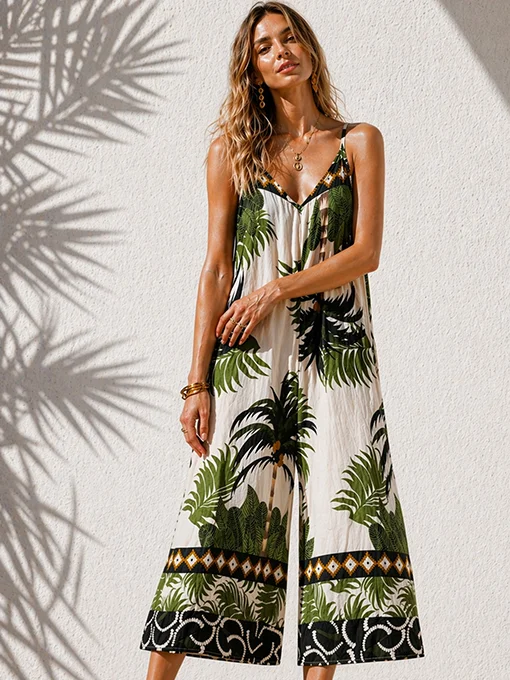 Ανάλαφρη ολόσωμη φόρμα με εντυπωσιακό print, τιράντες και άνετη, αέρινη γραμμή. Ξεχωρίζει για τη relaxed εφαρμογή και το ιδιαίτερο boho σχέδιό της, αποτελώντας ιδανική επιλογή για κομψές καλοκαιρινές εμφανίσεις.boho style