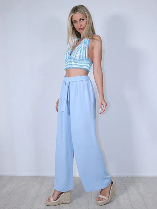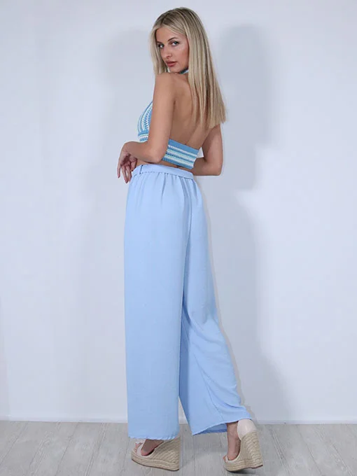 Παντελόνα γαλάζια φαρδιά με λάστιχο στη μέση