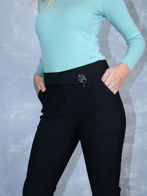 Παντελόνι ίσιο με λοξό κούμπωμα και διακοσμητικό στοιχείο.