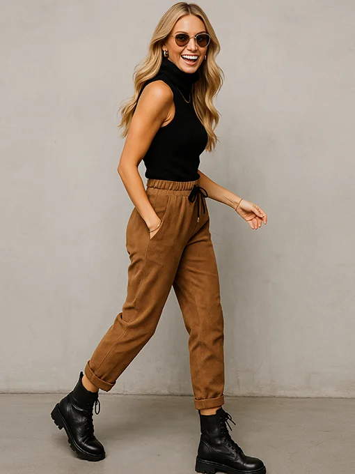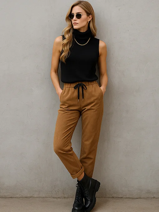 Παντελόνι αλκαντάρα με κορδόνι και τσέπες