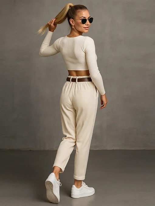 • Παντελόνι κοτλέ με ζώνη. Η άνετη γραμμή του χαρίζει chic casual ύφος, ενώ το μαλακό κοτλέ ύφασμα αγκαλιάζει το σώμα χωρίς να κολλάει. Συνδύασέ το με ζιβάγκο ή πουκάμισο και chunky sneakers για ένα μοντέρνο, καθημερινό look με στυλ.