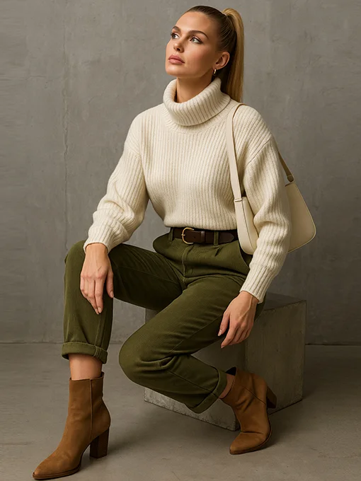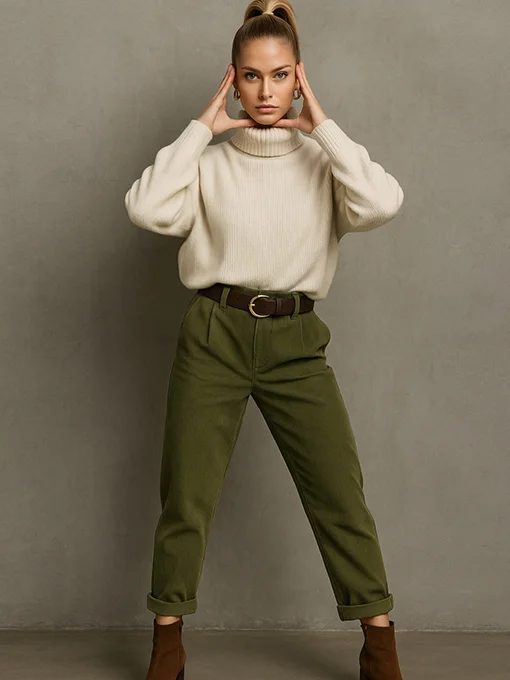 Παντελόνι κοτλέ με ζώνη. Η άνετη γραμμή του χαρίζει chic casual ύφος, ενώ το μαλακό κοτλέ ύφασμα αγκαλιάζει το σώμα χωρίς να κολλάει. Συνδύασέ το με ζιβάγκο ή πουκάμισο και chunky sneakers για ένα μοντέρνο, καθημερινό look με στυλ.