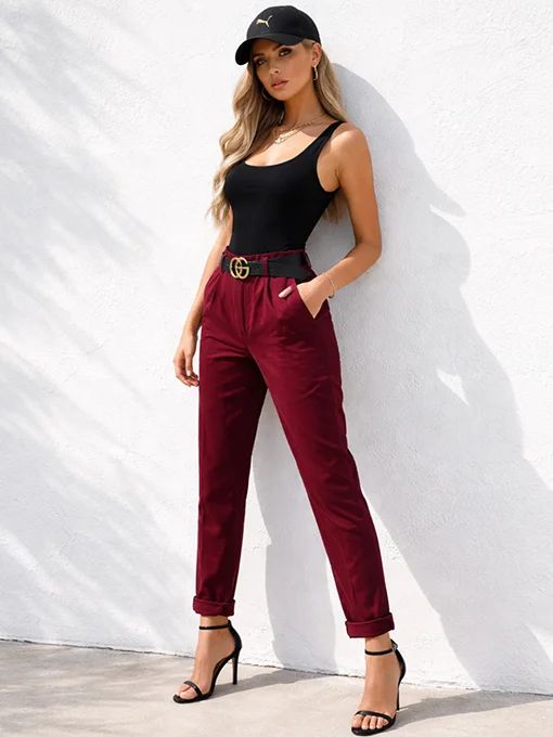 Ψηλόμεσο παντελόνι paperbag πολύ ελαστικό. Έχει λάστιχο γύρω από την μέση και ζώνη.