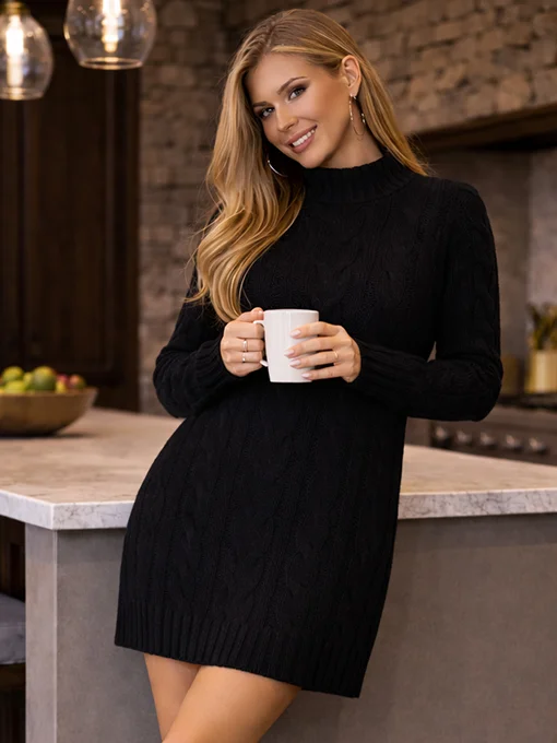 Πλεκτό φόρεμα με ανάγλυφη πλέξη, σε ίσια, χαλαρή γραμμή που δεν αγκαλιάζει το σώμα. Μονός λαιμός με διακριτικό ξεχύλωμα, μακριά μανίκια και μήκος λίγο πάνω από το γόνατο. Άνετο, cozy και κομψό — ιδανικό για καθημερινές αλλά και πιο προσεγμένες εμφανίσεις.
