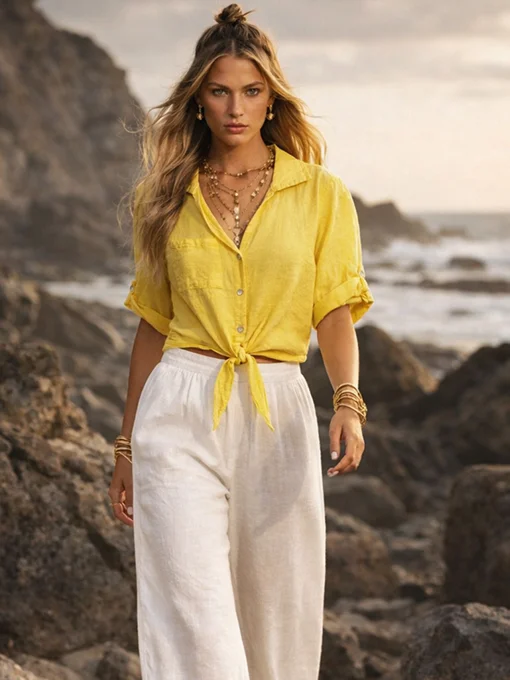 Πουκάμισο λινό με δέσιμο.