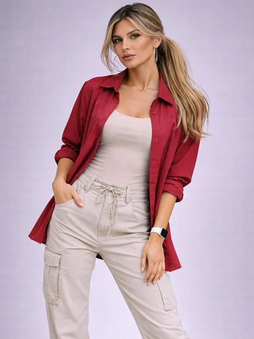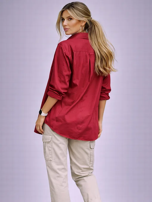 Πουκάμισο μονόχρωμο. Διαθέτει κλασικό γιακά, μακριά μανίκια με φαρδιές μανσέτες και διπλό κουμπί. Ένα κομμάτι που συνδυάζεται εύκολα από το πρωί έως το βράδυ με παντελόνια, τζιν ή φούστες, για σύγχρονα και μοντέρνα looks.