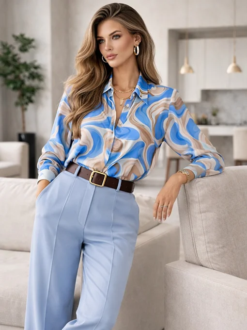 • Αέρινο πουκάμισο με εντυπωσιακό abstract μοτίβο. Φαρδιά, άνετη γραμμή με κρυμμένα κουμπιά για καθαρό και κομψό αποτέλεσμα. Φοριέται εύκολα από το πρωί έως το βράδυ.