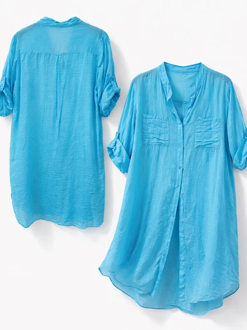 Πουκαμίσα μακριά γάζα με τσεπάκια στο στήθος.