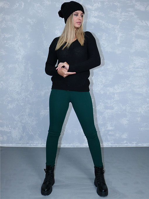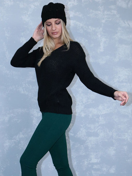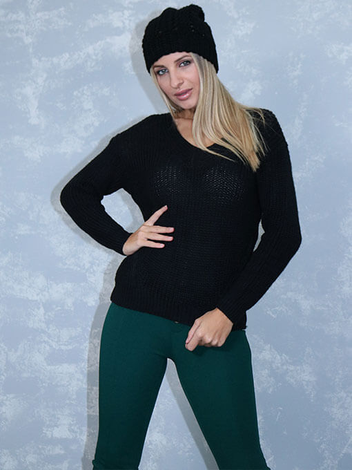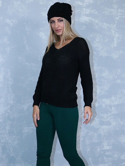 Πουλόβερ oversize με Ve και χοντρή πλέξη, μονόχρωμο.